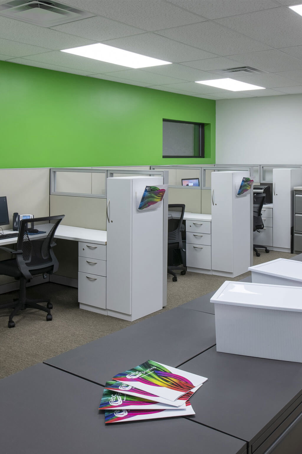 Express Business Center is roughly a 5,000 square foot, single story space in Lower Macungie Township, Pennsylvania. This project was a renovation of two existing buildings that were originally constructed in the 1950’s and later joined together across an old alleyway. SAGE had to identify what could be repurposed from the existing building and incorporate those elements into the new design effectively. SAGE was able to salvage the exterior structure walls and some existing windows. (We removed existing wood roof trusses, existing floor structure) The exterior consisted of wood roof trusses with a shingle roof, vinyl siding and store front glass. We included energy efficient upgrades such as rigid insulation on the outside walls, blown in insulation in the attic space, along with high efficiency HVAC equipment for heating and cooling.