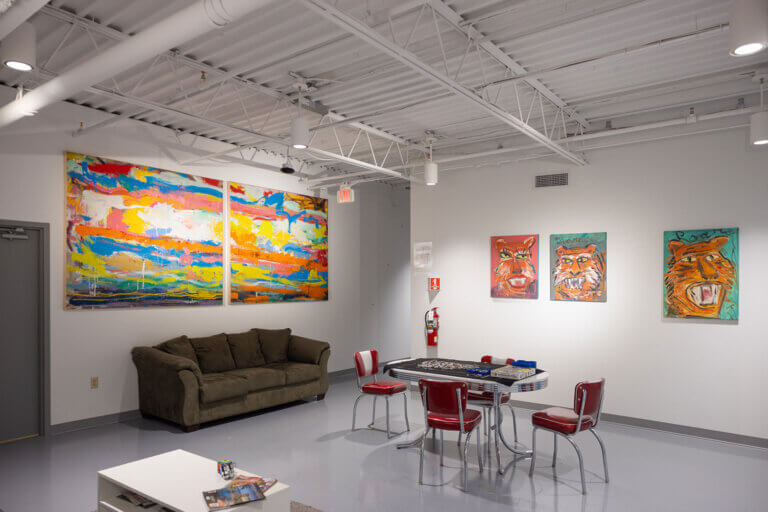 The JuxtaHub Phase 1 project is a 22,000 SF renovation and updates to the Organizations’ existing studio, classroom, and maker space. On the first floor a corridor was added that will serve as a main gallery space for JuxtaHub’s focus on the arts. Off this corridor existing classroom and makerspace woodshop were reconfigured and updated with new finishes, lighting, and mechanical systems to better serve JuxtaHub’s growing arts education need. Additionally on the first-floor new restrooms were added along with a new elevator which will allow accessible travel to the second floor. Up on the second floor, 23 new studio spaces were constructed for JuxtaHubs’ growing pool of artists. Secondary spaces, such as an artist clean up room and new restrooms were also added to the program to serve the studio spaces.