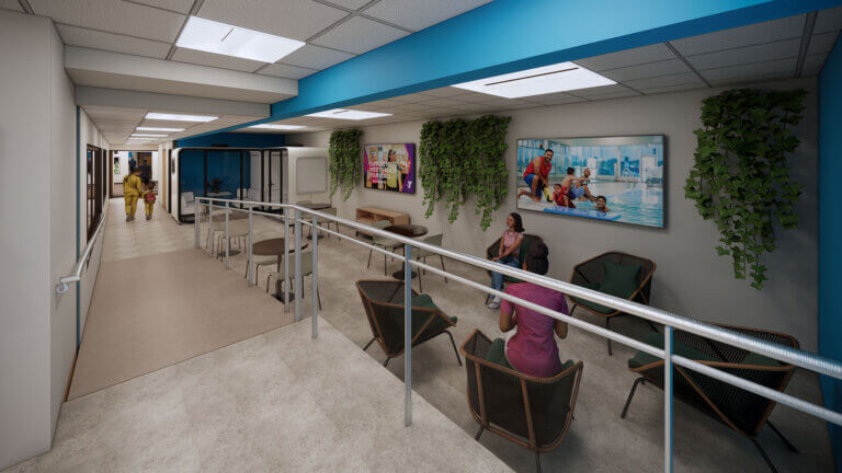 In partnership with the River Crossing YMCA, SAGE will transform the Nazareth branch through a new addition and extensive renovations designed to better serve the region’s growing community. The planned 7,200sf addition will introduce new classrooms, an indoor play area, and upgraded restroom facilities. Additional project scope includes reconfiguring accessible parking and site access, relocating the main entrance, installing two new stair towers and an elevator, and renovating existing locker room areas and support spaces.